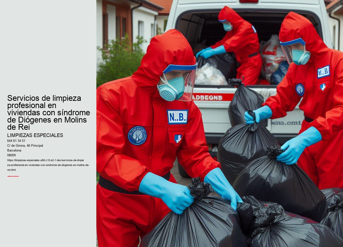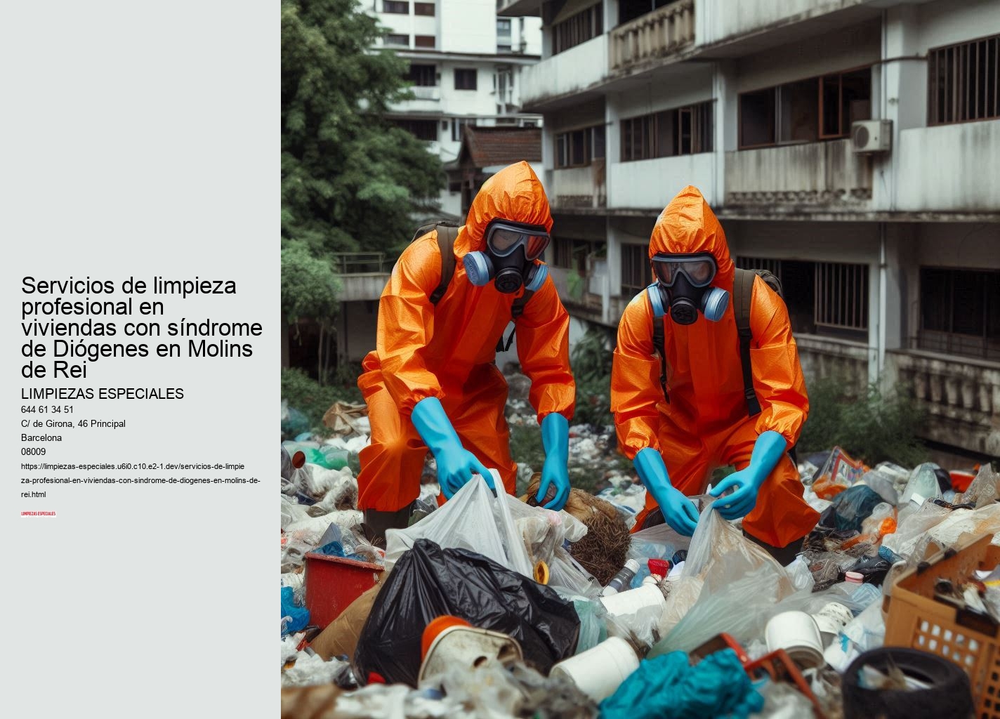 ¿Por qué esperar más? Póngase en contacto con nosotros hoy mismo y recupere la tranquilidad y seguridad de su hogar. Llame ahora para recibir un presupuesto gratuito y sin compromiso. No enfrente este desafío solo, estamos aquí para asistirle en cada paso del camino. Mejor opción para la Servicios de limpieza profesional en viviendas con síndrome de Diógenes en Molins de Rei !LLAMA AHORA¡ ¡Transforme su hogar y su vida con Limpiezas Especiales!